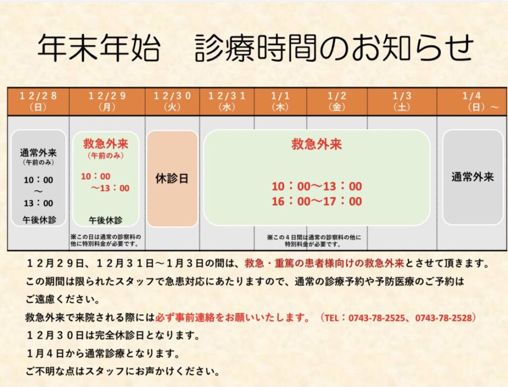 年末年始の診療時間は通常と異なります。
